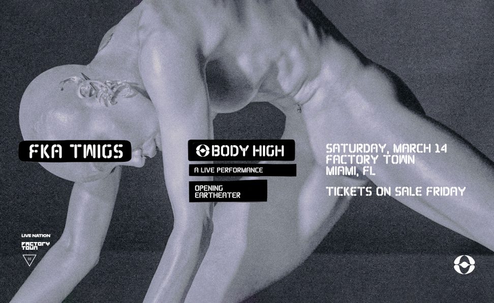 Miami, it’s time to block out Saturday, March 14! FKA twigs is bringing BODY HIGH: a live performance to Factory Town with Eartheater 🥵🥵